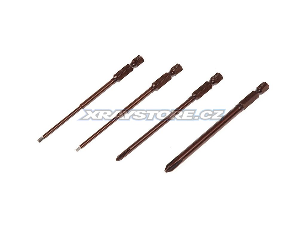 Sada hrotů Xceed s hroty dlouhými 100 mm, které obsahují imbusový klíč 2,0 mm a 2,5 mm a křížový šroubovák 4,0 a 5,8 mm.