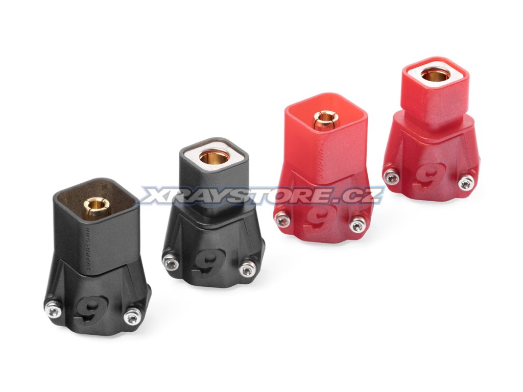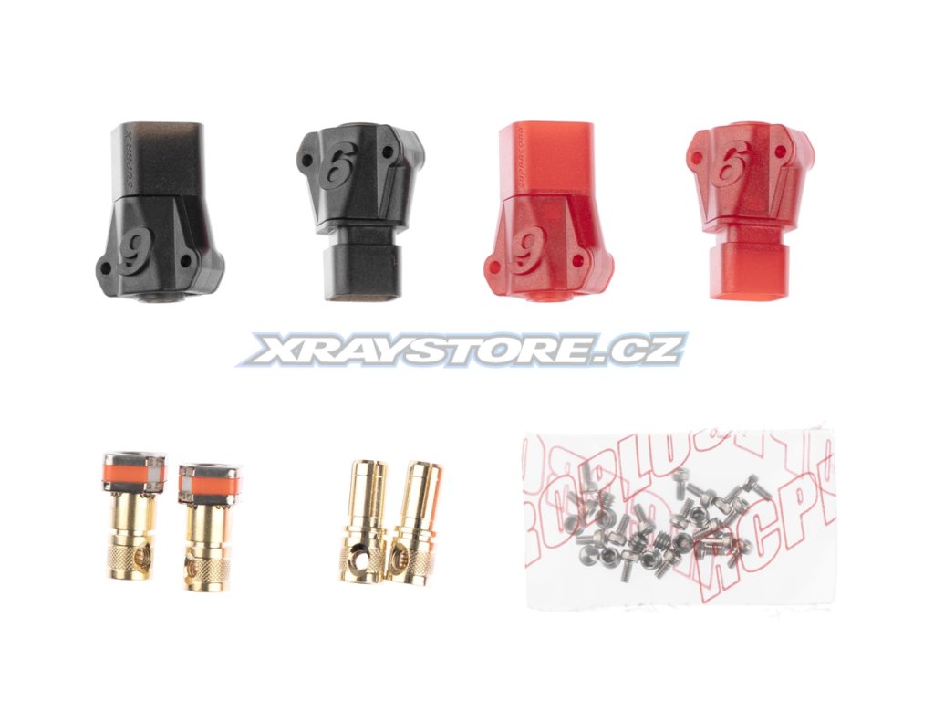 Zlacené 6mm Anti-spark konektory s domkem pro 8,4mm2 (8AWG) kabel. Konstantní proud 240A, špičkový 280A. Max 60V DC. Nepájecí varianta - kabel je zajištěn pomocí dvou imbusových červíků. Balení 2 páry (2x antispark samice + 2x samec). Kompatibilní s S6 6808 ULTRA (REB6808ULTS6P6 a REB6808ULTS6P2).
