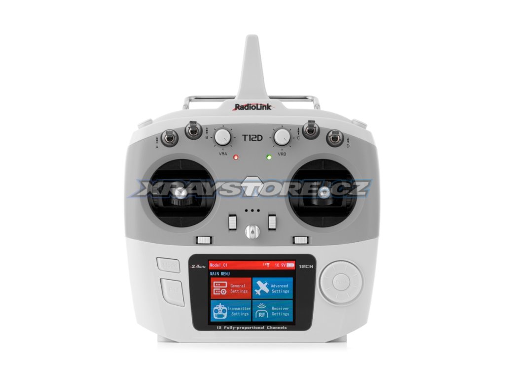 Programové vybavení:T12D nabízí programy pro osm typů modelů - klasická letadla, samokřídla/delty, multikoptéry, vrtulníky, auta, lodě, pásová vozidla/tanky a roboty, přičemž nabízí možnost spolupráce s řídícími jednotkami RadioLink pro letadla, drony, vozidla nebo třeba zavážecí lodi pro rybáře včetně příslušné telemetrie.